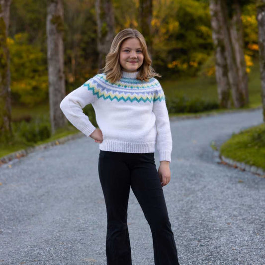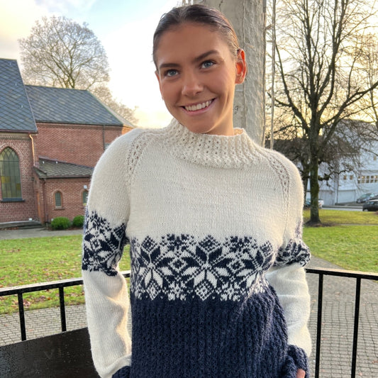 Strikk The Look: Lysefjord-genser (Alp storm) marine