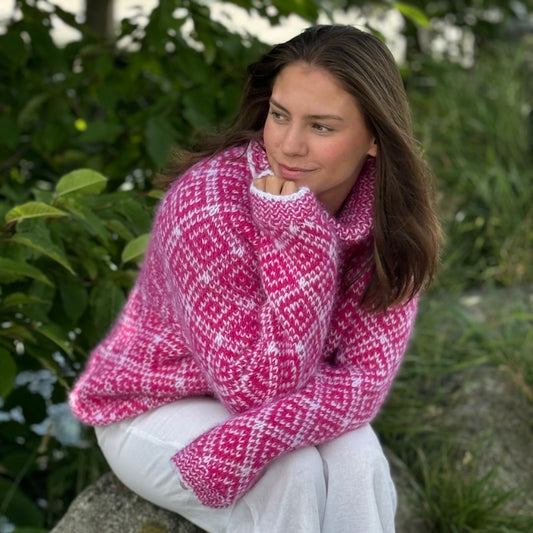 Strikk The Look: Mareng-genser, rosa by Mie Capplen