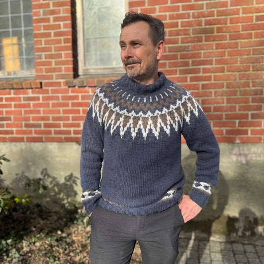 Strikk The Look: Farfar-genser jeansblå