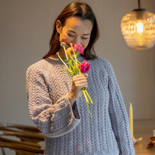 Strikk The Look: Mareng-genser, lys gråblå by Mie Capplen