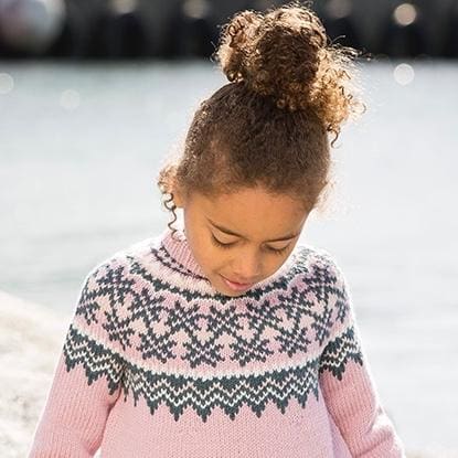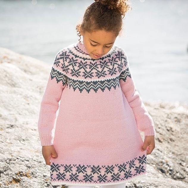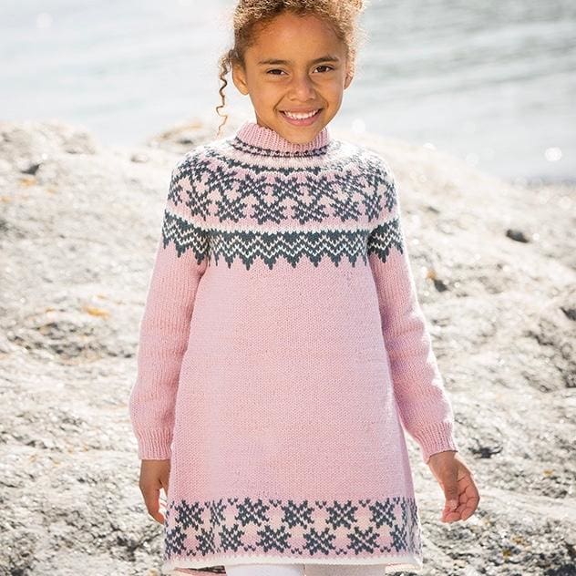 I pakken får du med Alpaca Storm i lys rosa (farge 566), hvit (farge 500), jeansblå (farge 527) og pudderrosa (farge 553), samt mønster (levert digitalt).
