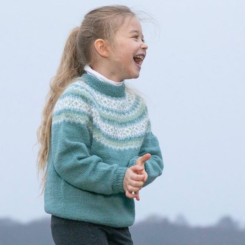 I pakken får du med Alpaca Liten Storm i petrol (farge 738), hvit (farge 700), lys petrol (farge 731), mintgrønn (farge 737) samt mønster (levert digitalt).