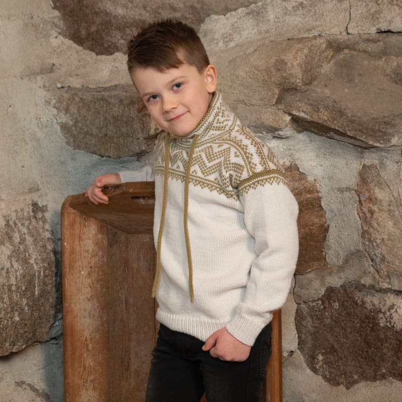 I pakken får du med Viking Merino i hvit (farge 800), oliven (farge 833), samt mønster (levert digitalt).