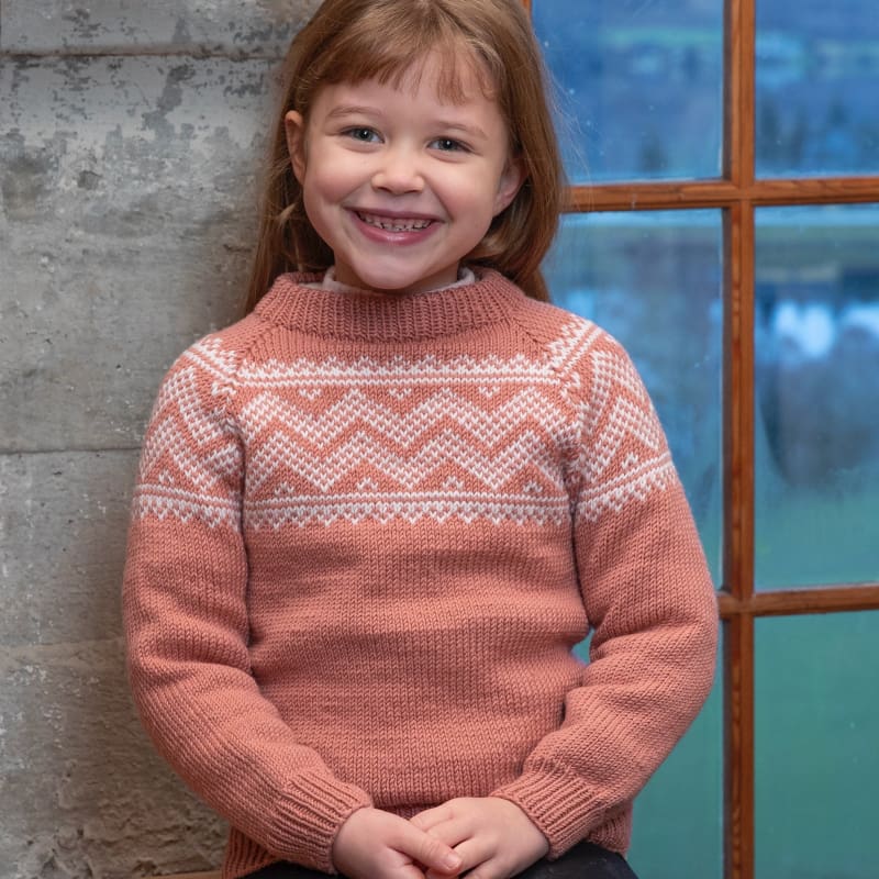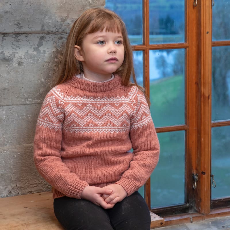 I pakken får du med Viking Merino i korall (farge 846), hvit(farge 800), samt mønster (levert digitalt).