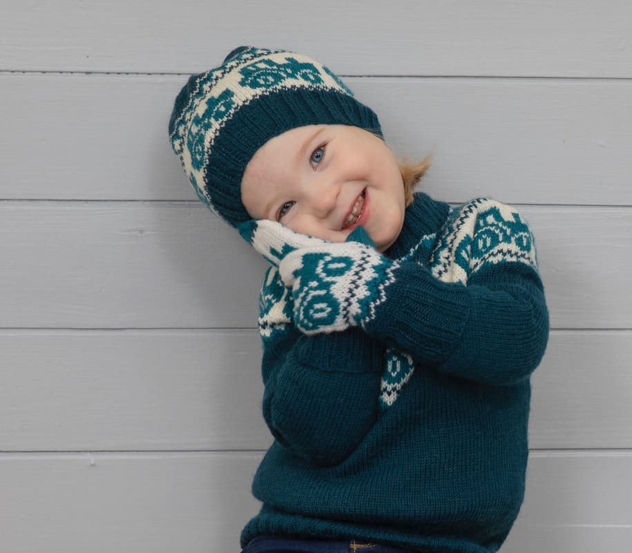 I pakken får du med Viking Frøya i mørk petrol (farge 233), naturhvit (farge 200), turkis (farge 230), samt mønster (levert digitalt). ØNSKES PAPIRUTSKRIFT MÅ DET KRYSSES AV FOR.