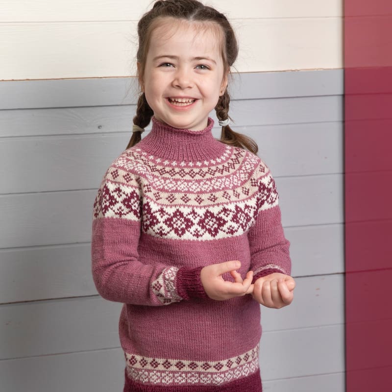 I pakken får du med Viking Frøya i gammelrosa(farge 222), burgunder (farge 221), naturhvitt(farge 200), beige (farge 280), samt mønster (levert digitalt).
