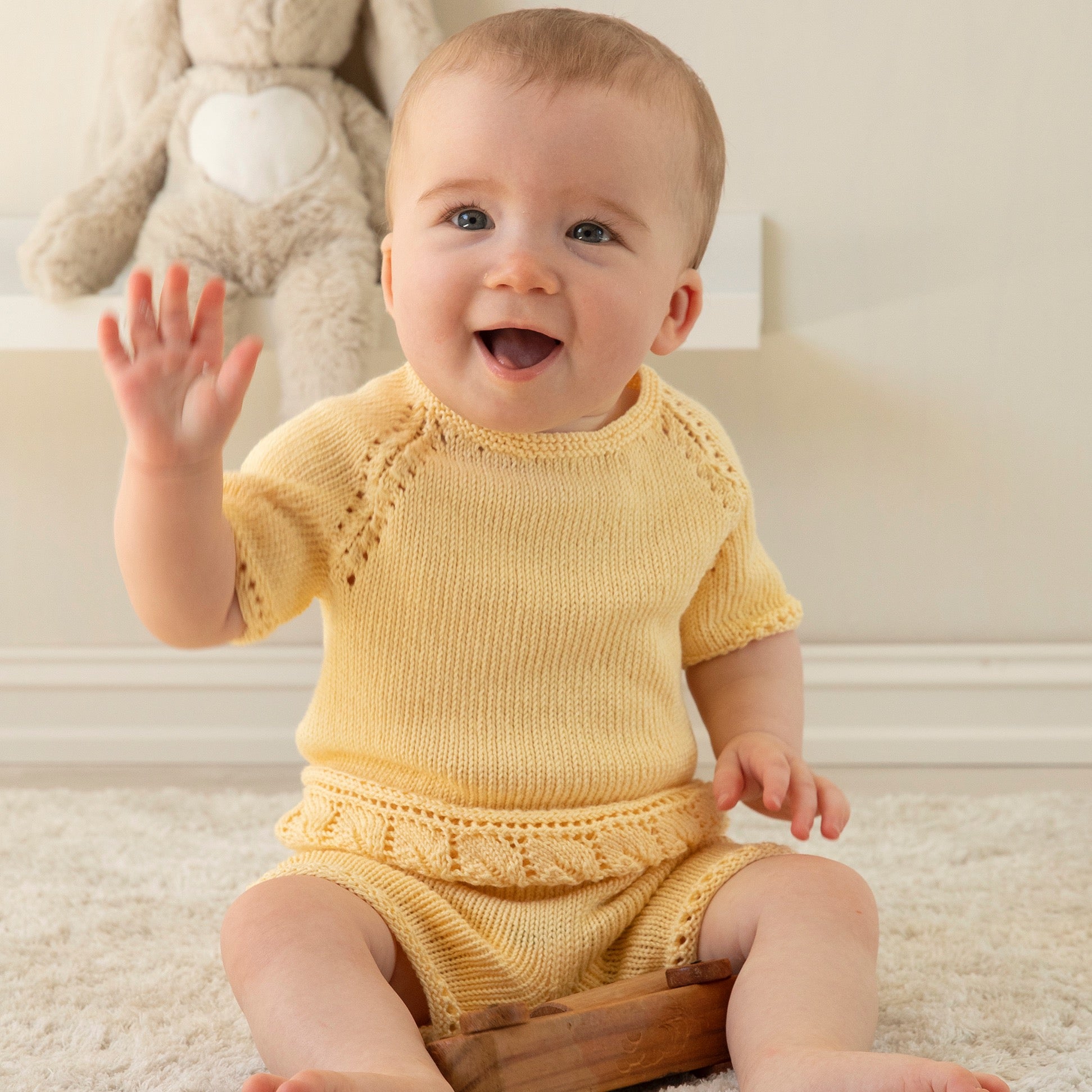 I pakken får du med Bambino i lys gul (farge 443), samt mønster (levert digitalt).