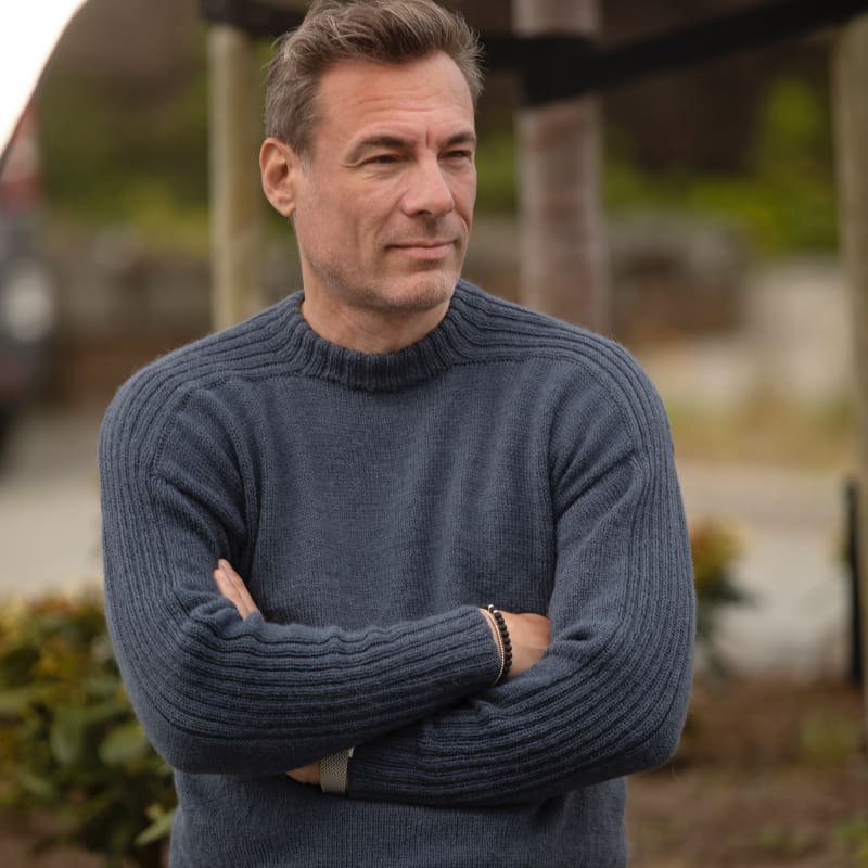 I pakken får du med Alpaca Liten Storm i jeansblå (farge 727), samt mønster (levert digitalt).
