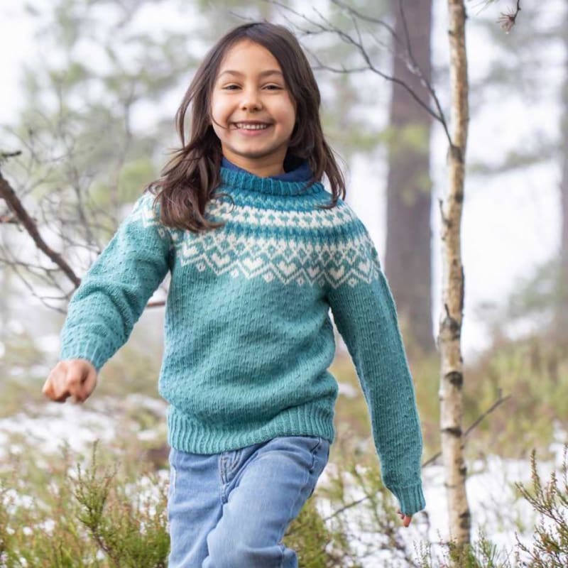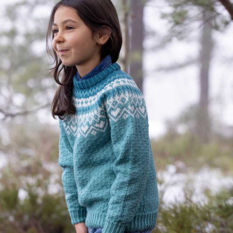 I pakken får du med GT Silja superwash i blågrønn (farge 367), natur (farge 300),petrol ( farge 370), samt mønster (levert digitalt).