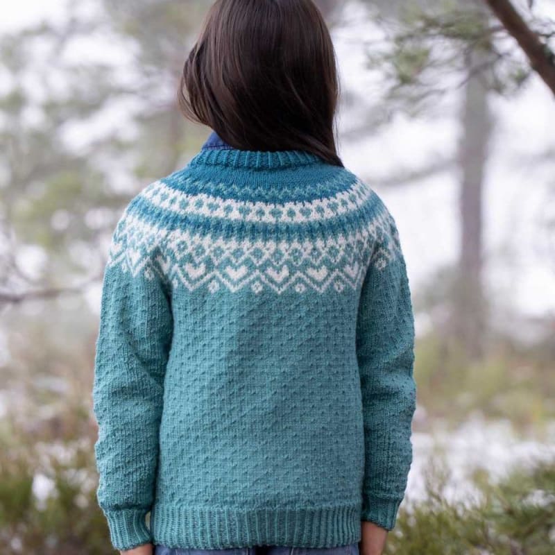 Garnmengde (og pris) er avhengig av størrelse og iht leverandørens spesifikasjon/mønster basert på oppgitt strikkefasthet. (26 m glattstrikk på pinne nr 3 = 10cm)