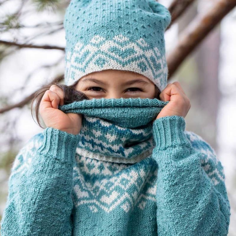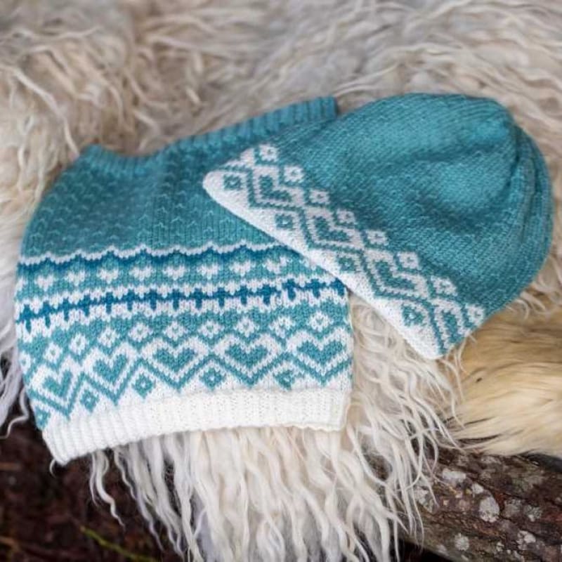I pakken får du med GT Silja superwash i blågrønn (farge 367), natur (farge 300), petrol (farge 370), samt mønster (levert digitalt).