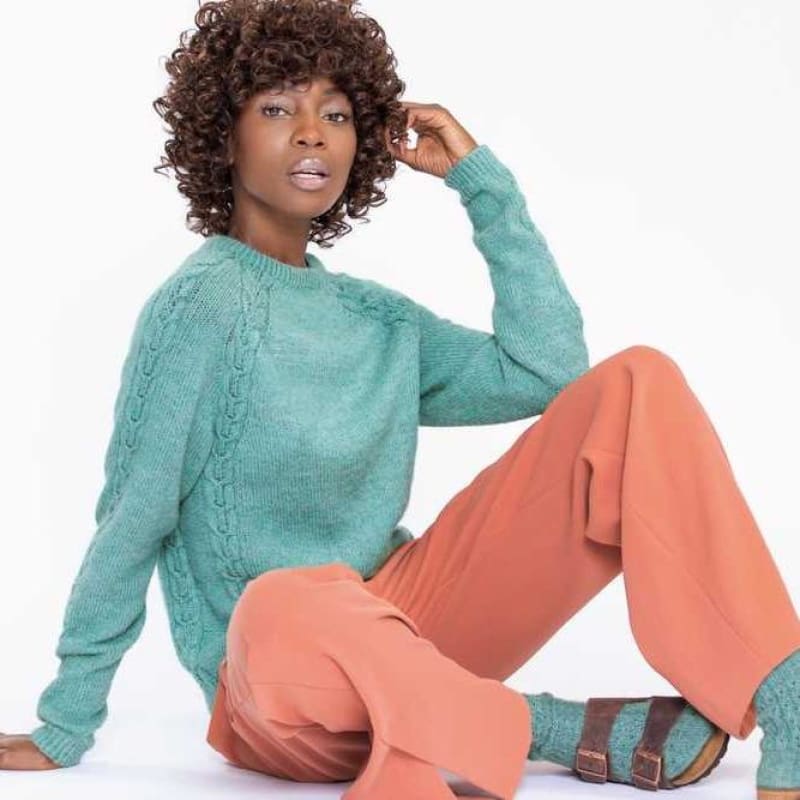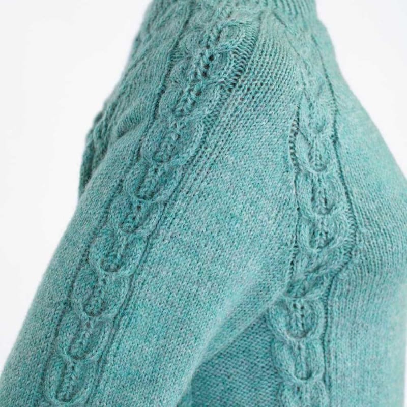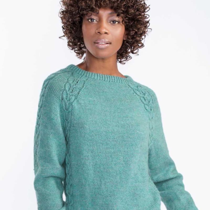 I pakken får du med Dale Alpakka forte i lys sjøgrønn melert (farge 713), samt mønster (levert digitalt).