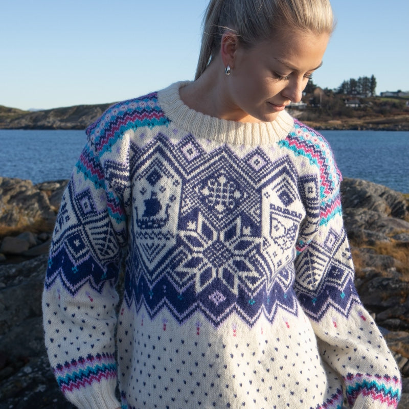 I pakken får du med Sterk fra DSA i natur (farge 806), Lys lavendel(farge 912), Mørk rosa ( farge 825), blå ( farge 815), turkis ( farge 905), samt mønster (levert digitalt).