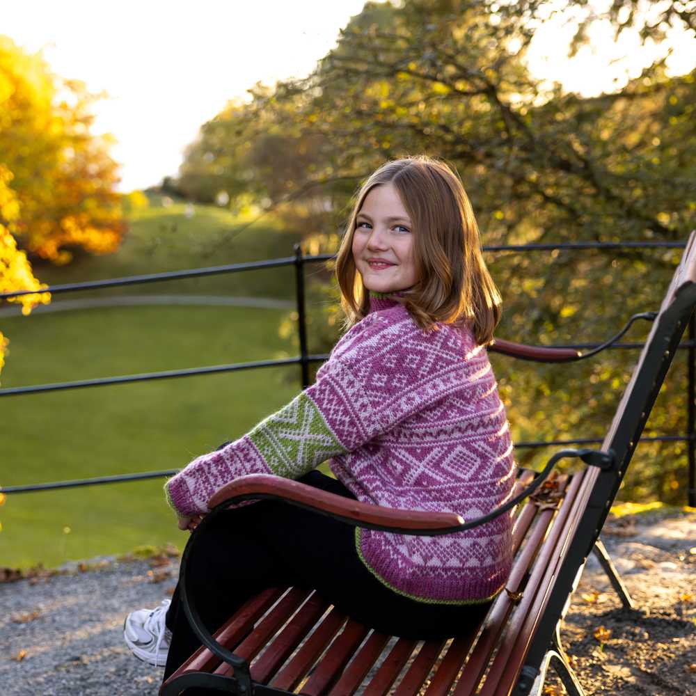 I pakken får du med Dale Older i rosamelert (farge 435), pudderrosa (farge 430), grønn melert (farge 434), samt mønster (levert digitalt).