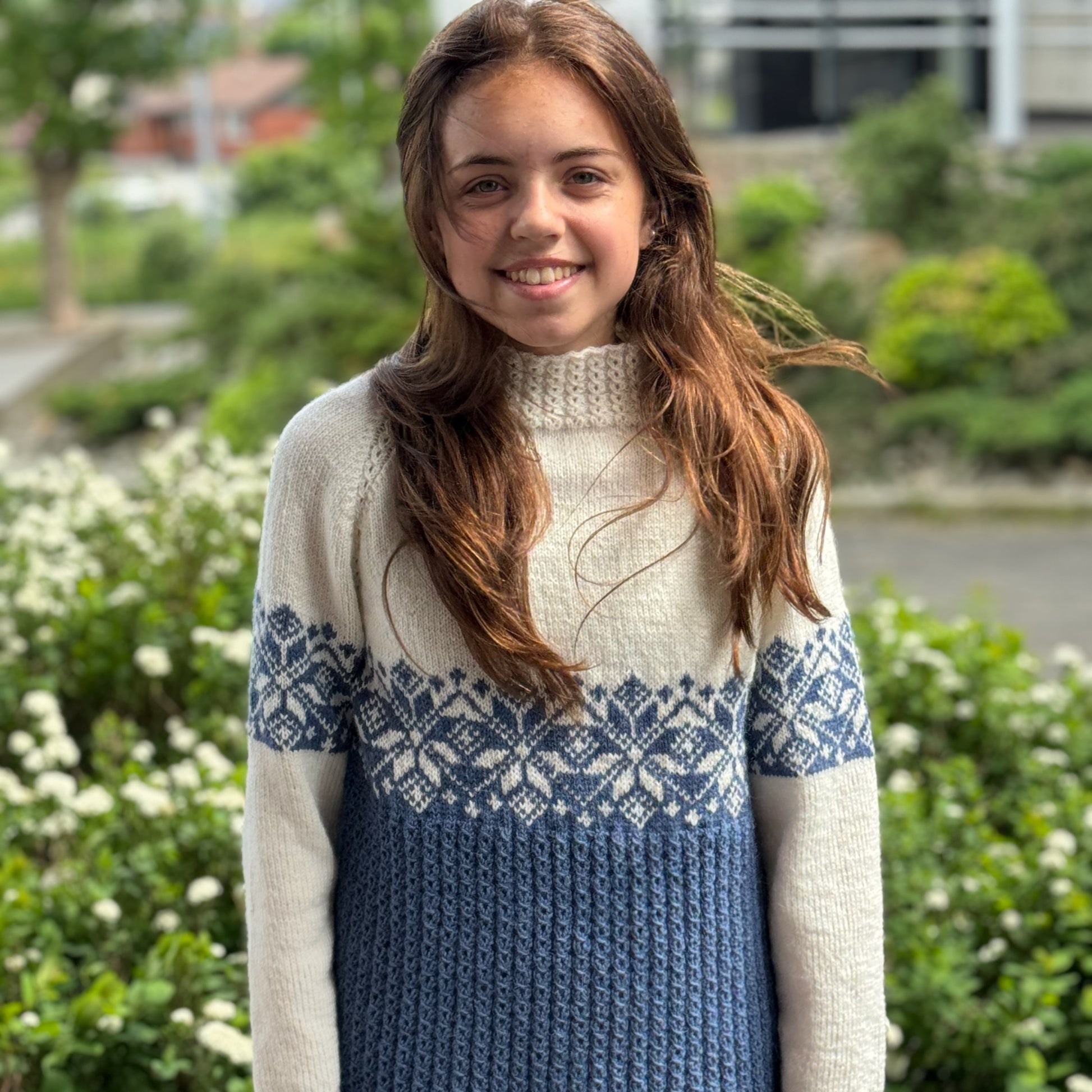 Genser håndstrikket i Mini- sterk fra Du store Alpakka. Størrelse 8/10 år