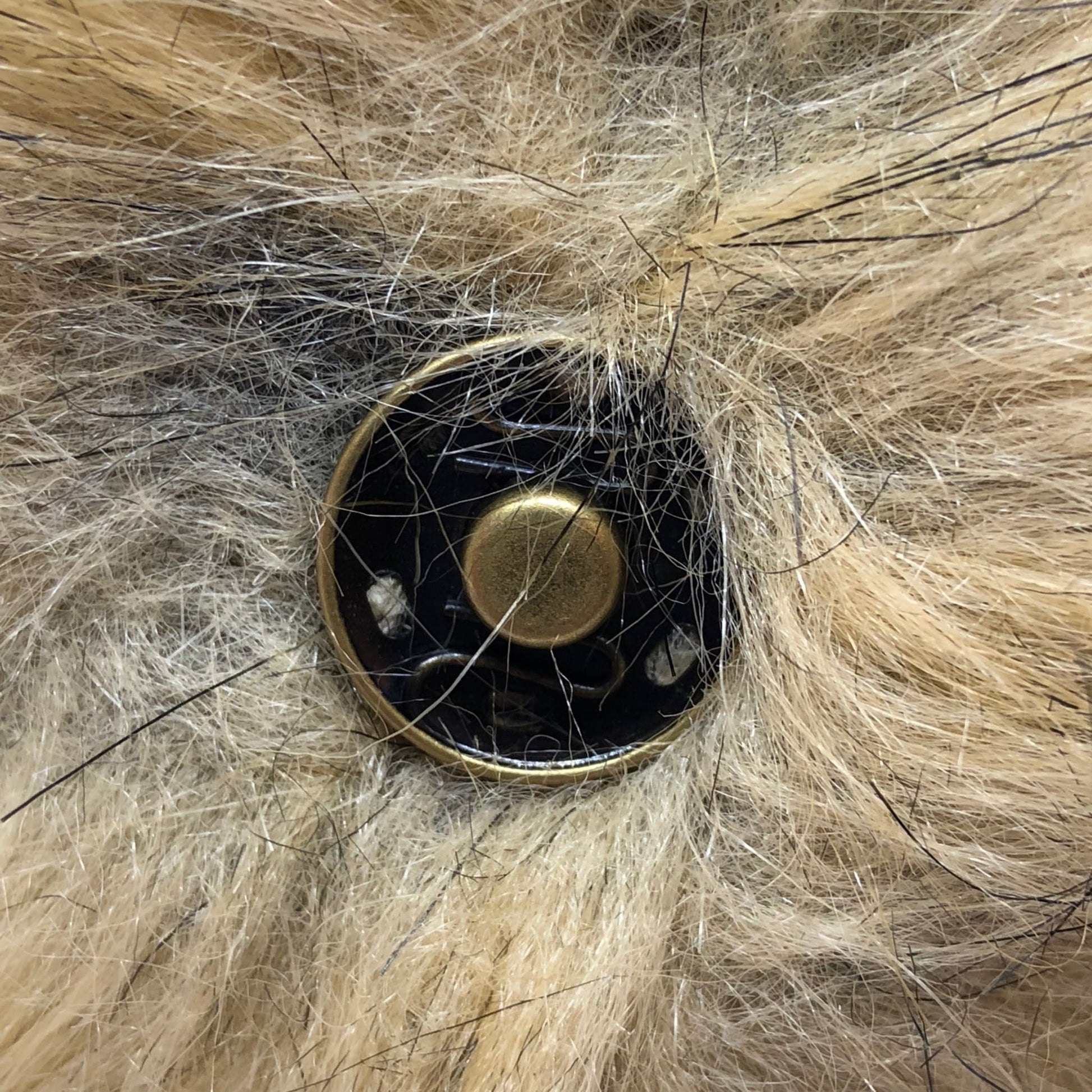 På undersiden er det en trykknapp. Sy fast den ene delen av trykkknappen i tøyet og knepp dusken på plass.