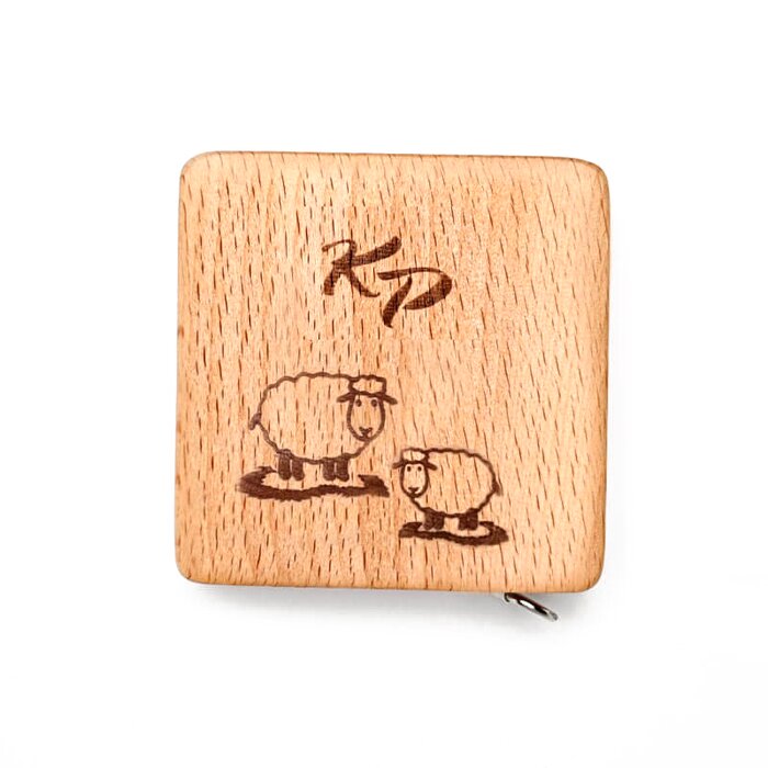 Uttrekkbart målebånd i firkantet tre fra Knitpro.Forsiden er dekorert med initialene til Knitpro og bilde av to sauer.Kjekt lite målebånd å ha med seg på reise.Målebåndet er også fin å gi i gave.