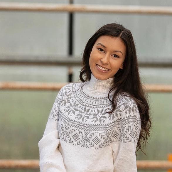 I pakken får du Alpaca Storm i fargen hvit (farge 500) og lys grå (farge 513), samt mønster (levert digitalt).