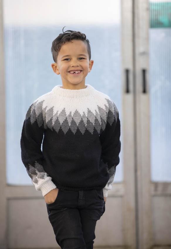 I pakken får du Alpaca Storm i fargen svart (farge 503), hvit (farge 500), mørk grå (farge 515) og lys grå (farge 513), samt mønster (levert digitalt).