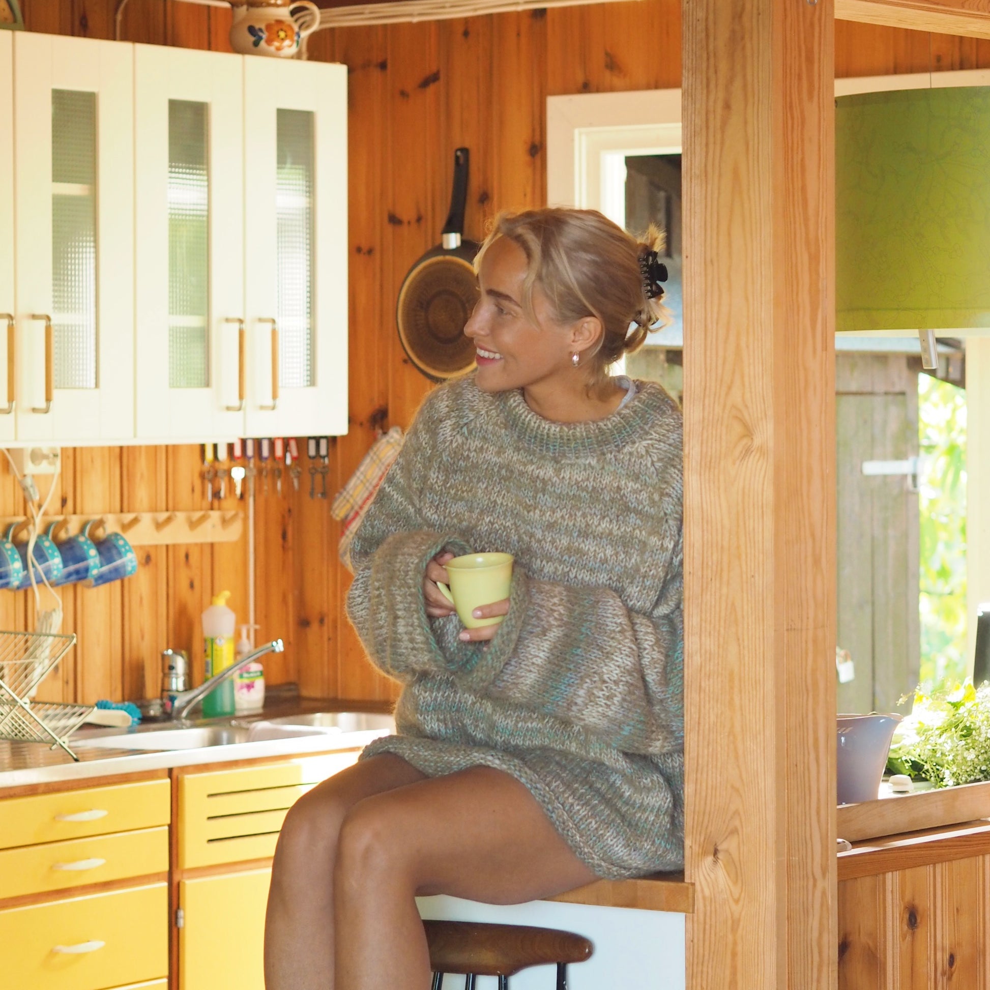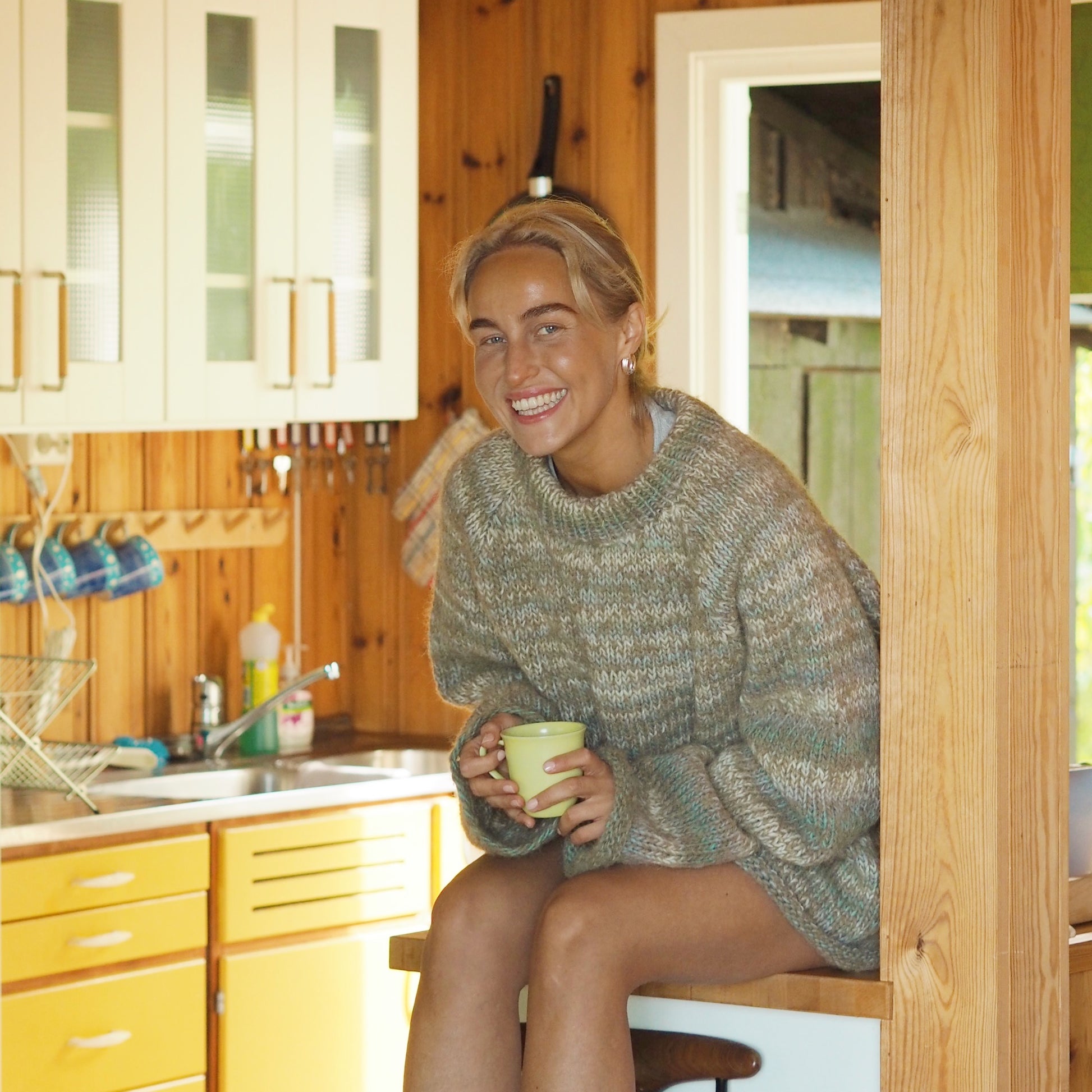 Strikk The Look: Øyunn unisex-genser mint/nøttebrun