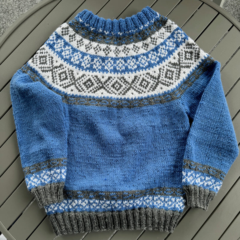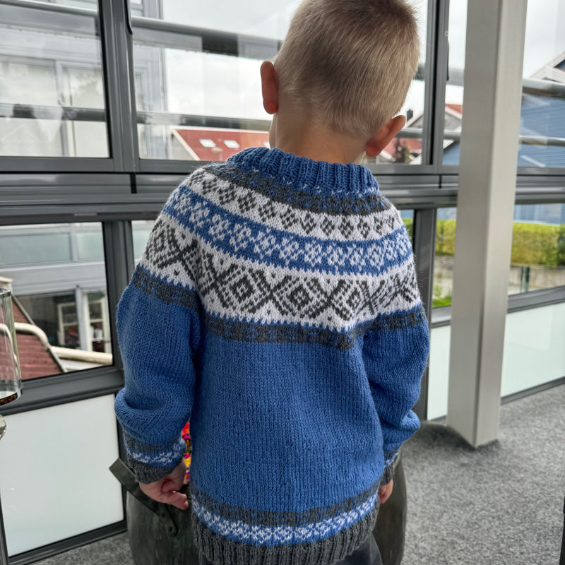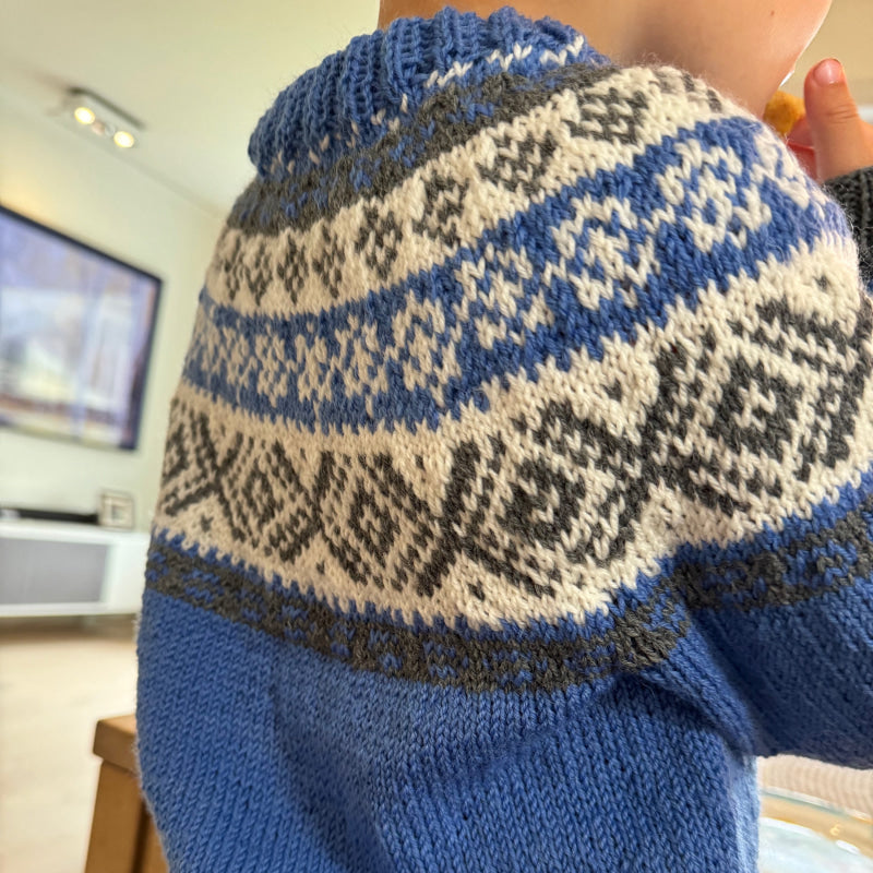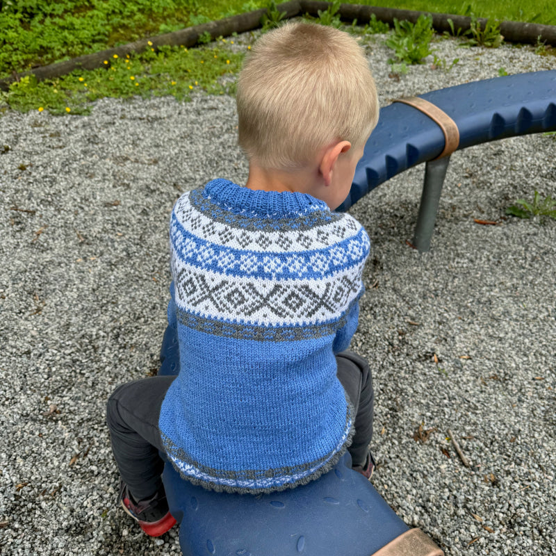 Garnmengde (og pris) er avhengig av størrelse og iht leverandørens spesifikasjon / mønster basert på oppgitt strikkefasthet. (25 masker glattstrikk på pinne nr. 3 = 10 cm).