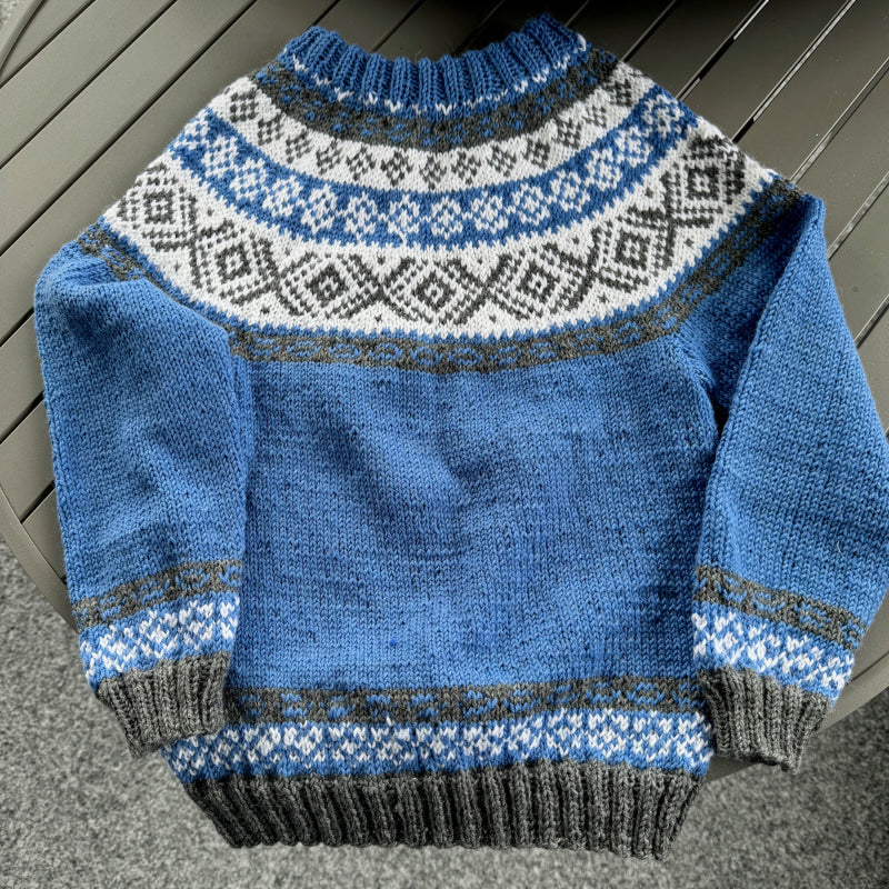 I pakken får du med Viking Frøya i kongeblå (farge 224), mørk grå (farge 205), hvit( farge 202), samt mønster (levert digitalt).