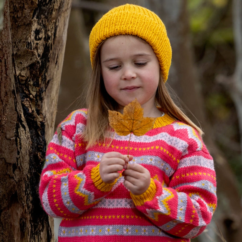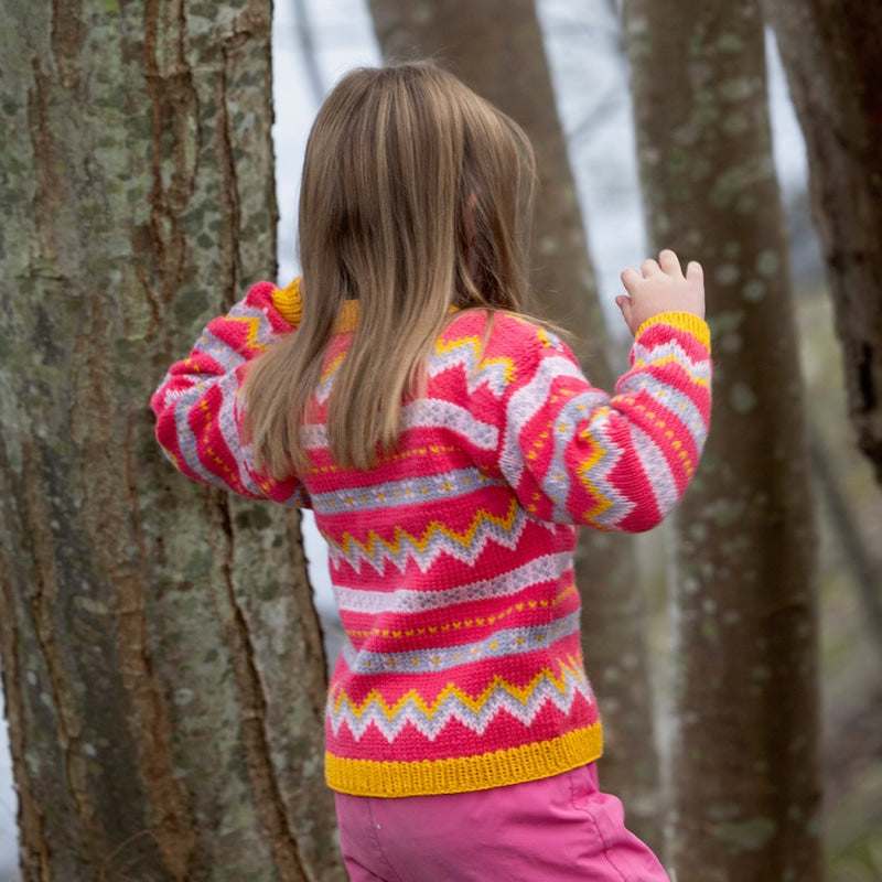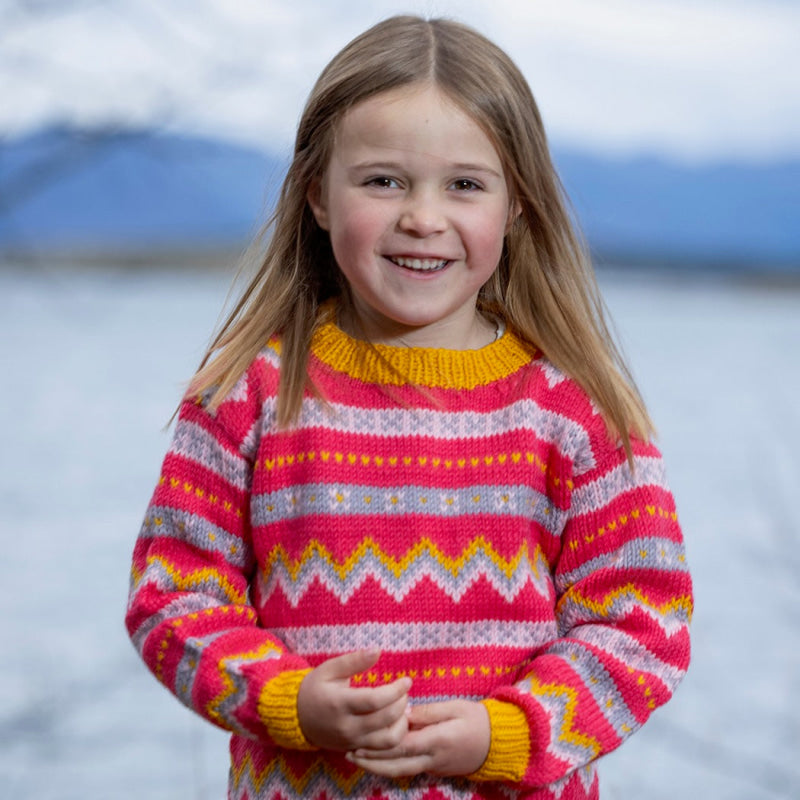 I pakken får du med Eco Highland ull i rosa (farge 265), støvet lilla (farge 266), gul (farge 245), lys rosa (farge 263), samt mønster (levert digitalt). ØNSKES PAPIRUTSKRIFT I TILLEGG MÅ DET KRYSSES AV FOR.